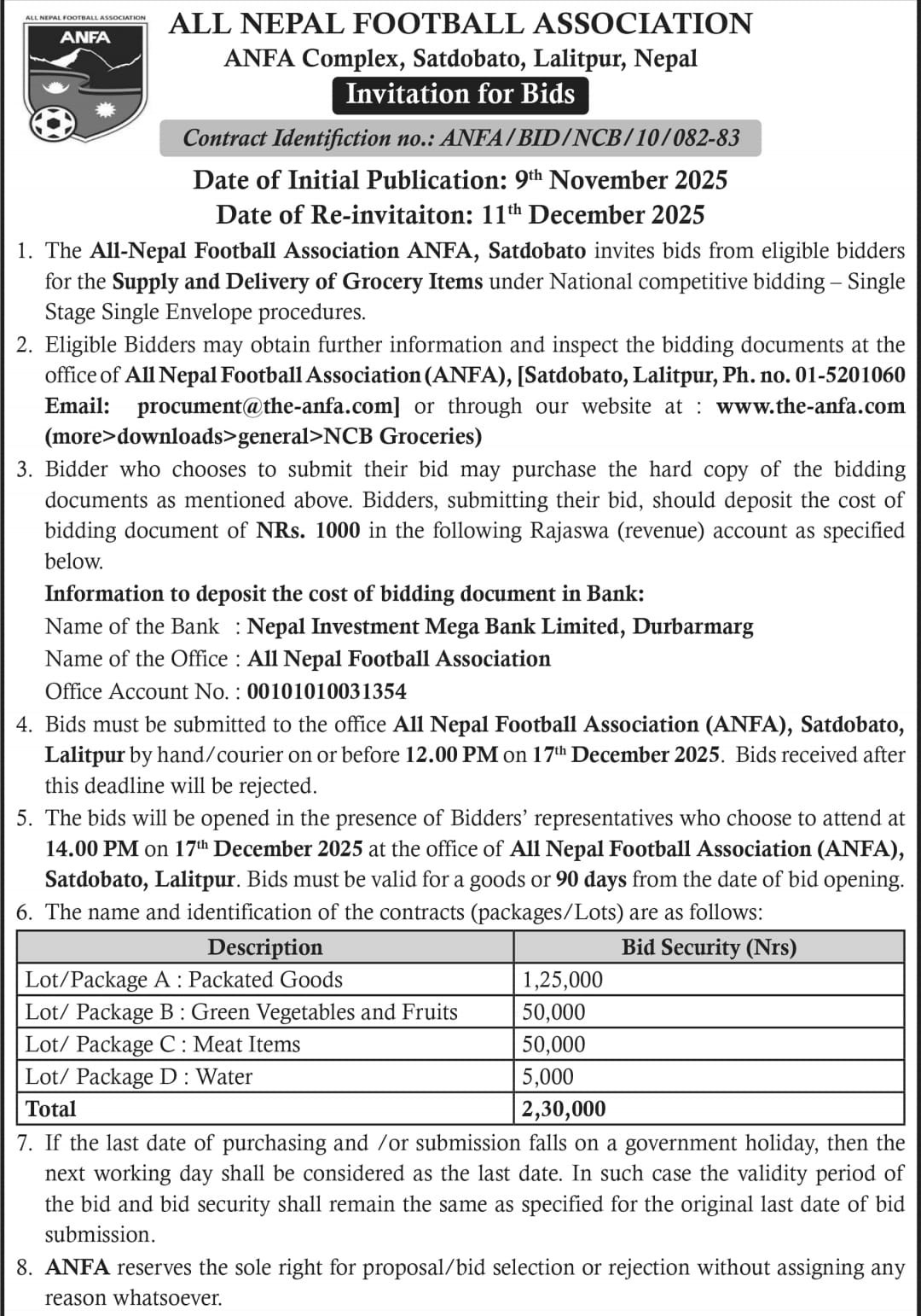 Notice regarding grocery
